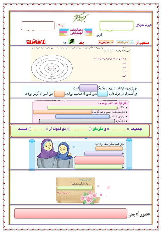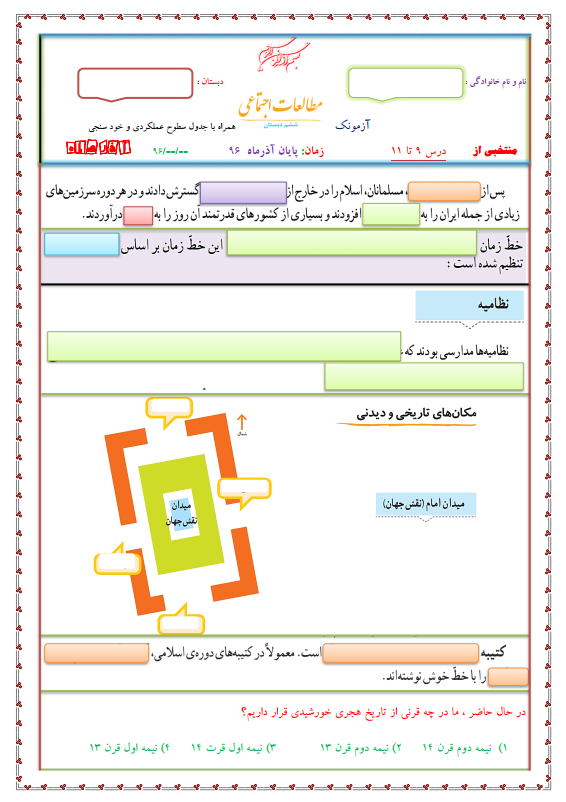 آزمون ( مطالعات ) برای کلاس پنجم (( منتخبی از درس ۱ تا ۹ آذر --۹6))
